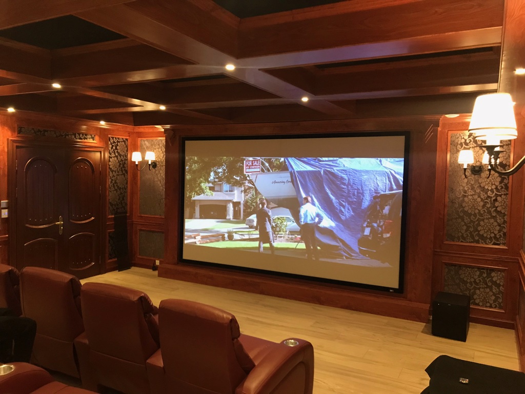 所以要想達到影院效果好是用一個80寸以上的高清投影幕和一臺高清投影機,有條件的話,可以這么操作,另外家庭影院沒有需要配備的投影設備。一來,那些設備體積較大,容易使本身就狹窄的房間看上去更擁擠。二來,話費較高,一般家庭承擔不起。重要的是,在狹小空間里,受距離與視角局限,投影設備反而發揮不出佳效果。